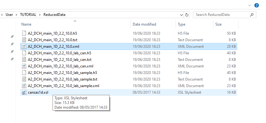 You can download the ".xsl" file from here cansas1d.xsl and make sure you save it in the same folder of your ".xml" file.
